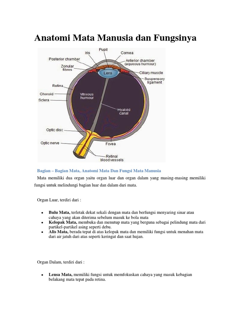 Related : Bahagian Mata Manusia Dan Fungsi : Anatomi dan fungsi bahagian mata..
