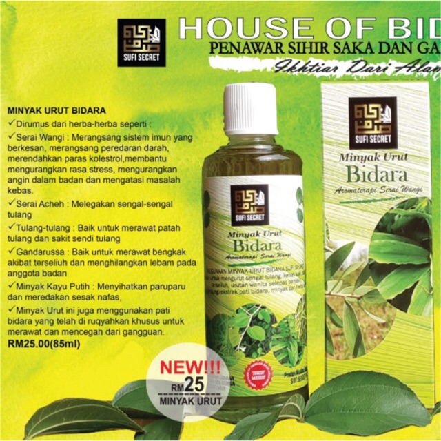 Minyak Urut Daun Bidara : Terdapat banyak campuran pelbagai jenis daun herba untuk diproses menjadi minyak urut.